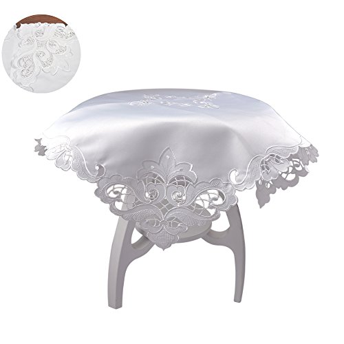 -. Title : Polyester Lace Tablecloth by Hand Embroidered,White Floral Cutwork Table Linens,Size: 33.5 Inch Square