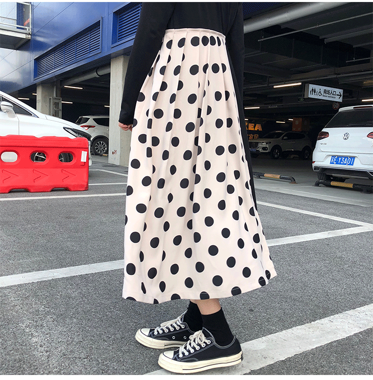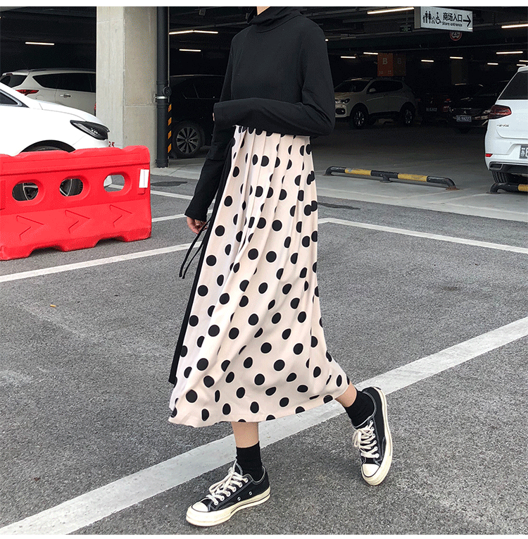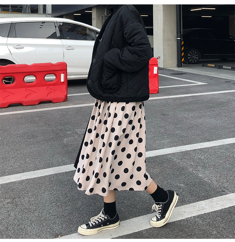 ウエスト部分はヒモで調節ができ、フレアなシルエットと丈感が大人の女性にもぴったり!