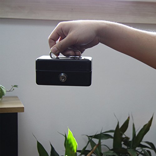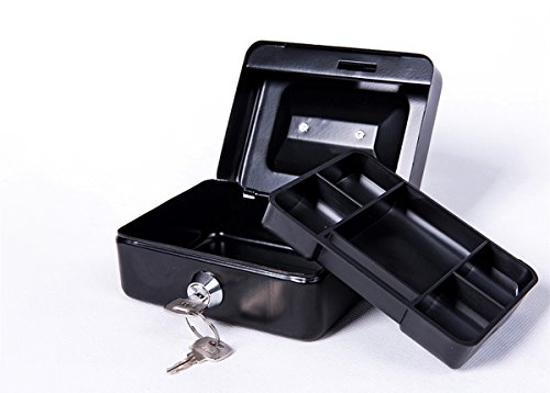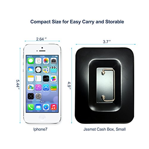 Jssmst Locking Small Steel Cash Box with Money Tray,Lock Box,Black Small
