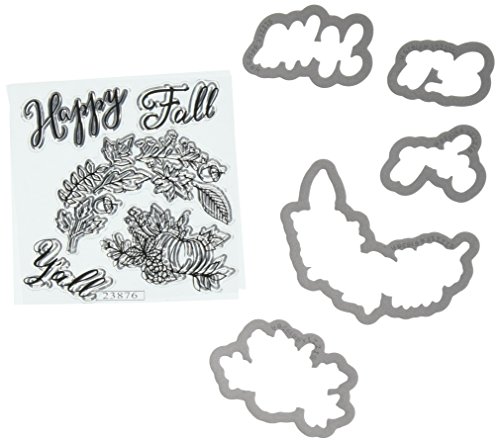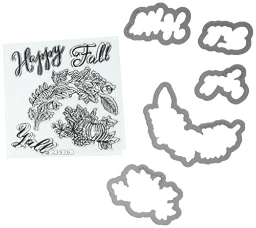 Sizzix 661630 Framelits Die Set with Stamps, Happy Fall Y'all by Jen Long (5/Pk)