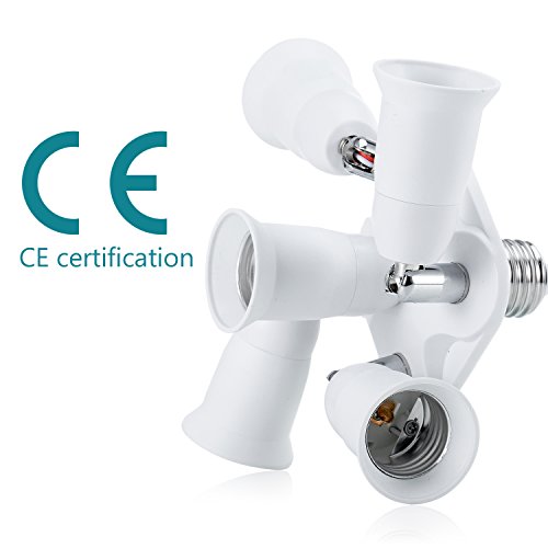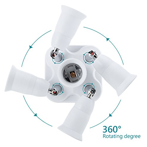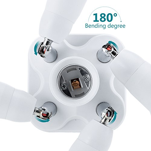 JACKYLED 5 in 1 Light Socket Splitter E26 E27 Adapter Converter for Standard LED Bulbs 360 Degrees Adjustable 180 Degree Bendable Max Watt 500W