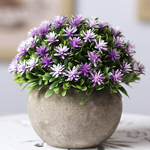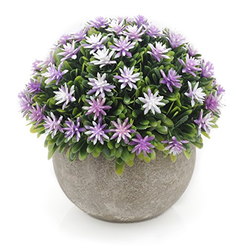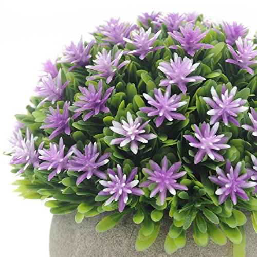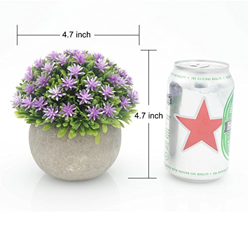 Velener Mini Plastic Artificial Pine Ball Topiary Plant with Pots for Home Decor (Purple Flower)