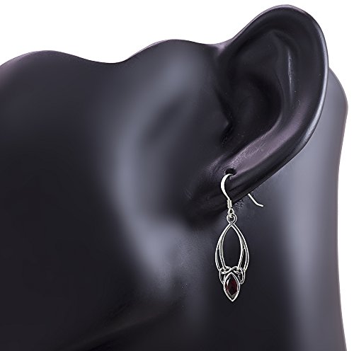 -. Title : 925 Sterling Silver Open Celtic Knot Symbol Red Garnet Gemstone Marquise Dangle Hook Earrings 1.5"