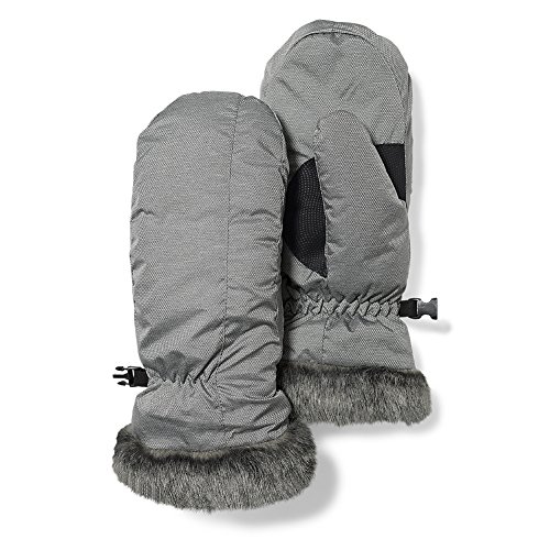 Studio : Eddie Bauer Publisher : Eddie Bauer Binding : Apparel Product Description With their water-repellent polyester/nylon shell fabric, faux fur trim, and down insulation, these mittens offer welcome warmth and great style. Palms have grippy texture for driving. Fit across the widest part of the hand has been expanded for greater comfort. 0
