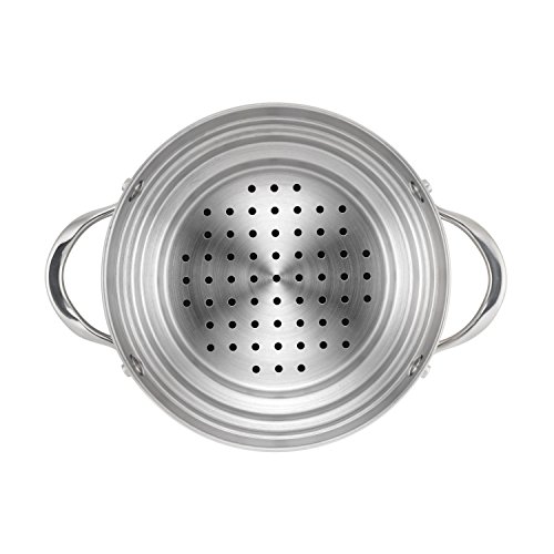 Steam vegetables, dumplings and more like a pro with the Anolon Classic Stainless Steel Universal Covered Steamer Insert. Steaming is a great way to retain nutrients while cooking delicious meals. Made of durable stainless steel, this sophisticated universal steamer fits both tulip and straight-sided models of 2-quart, 3-quart and 4-quart cookware. It's ideal for steaming shrimp and scallop shumai, broccoli florets and baby carrots, or pork and chicken pot stickers. A shatter-resistant glass lid provides a snug fit to seal in heat and moisture and allows easy monitoring of food while it cooks. The dual-riveted handle provides a comfortable, confident grasp. And for convenience, the cookware is dishwasher safe for no-hassle cleanup and oven safe to 500 Degree F. This elegantly designed steamer coordinates well with other Anolon cookware pieces and is a convenient addition to any kitchen. Cook with steam and create delicious garden-fresh vegetables and other foods using the professional performance of the Anolon Classic Stainless Steel Universal Covered Steamer Insert.Feature
