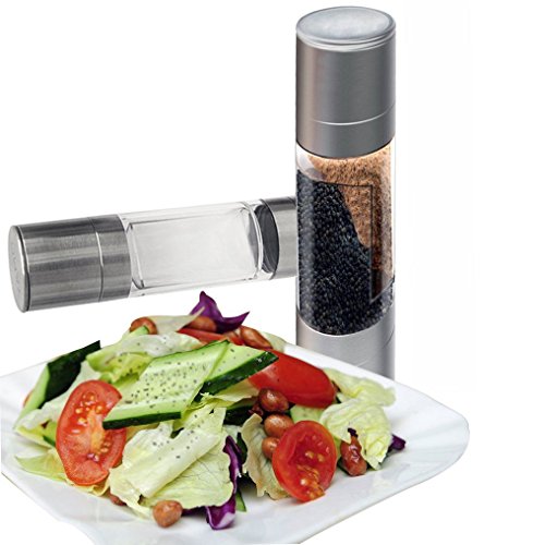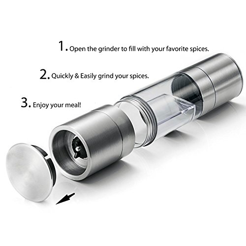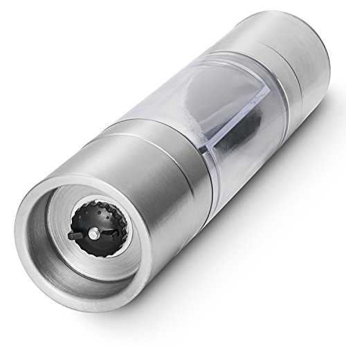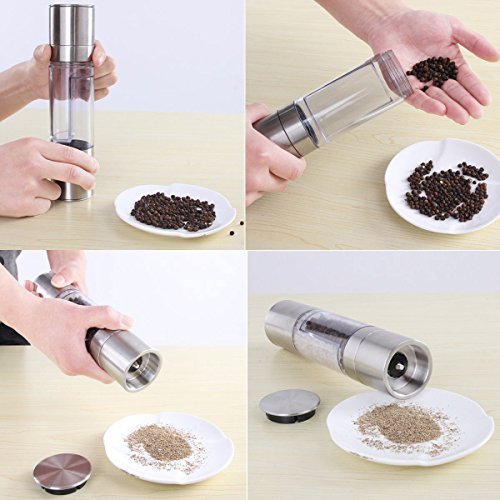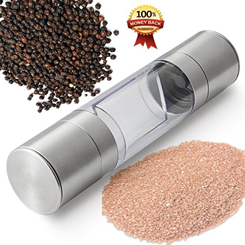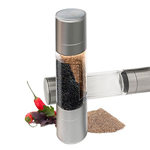 Salt and Pepper Grinder Set 2 in 1 - Salt Pepper Mill Set with Adjustable Ceramic Grinding Mechanism - High Quality Stainless Steel By Rioa