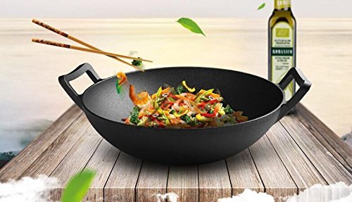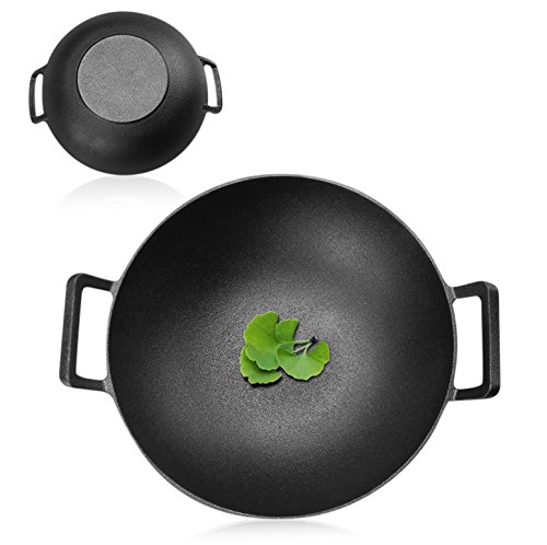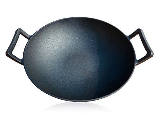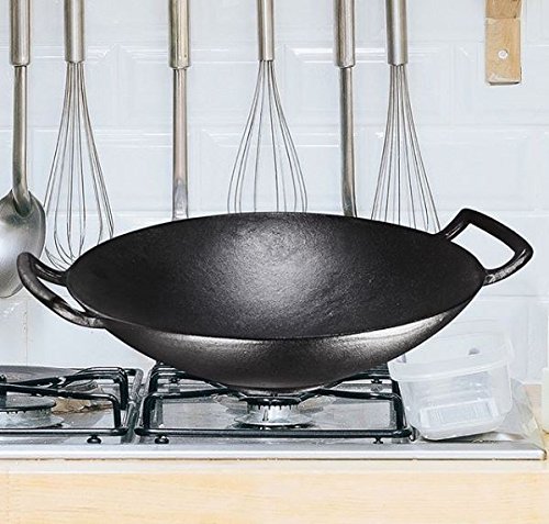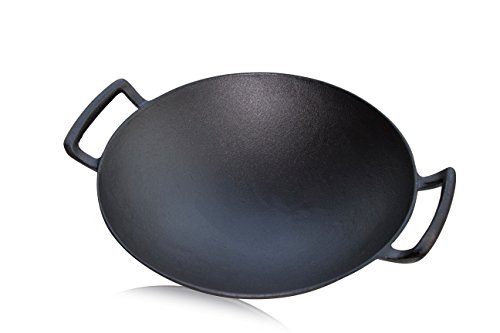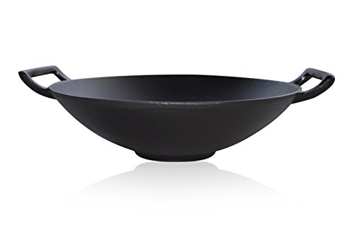 wider handles make it easier to manipulate with a safe and secure grip, while the wide curved base gives you stability while stir-frying. Best of all, the cast iron properties of this wok provides superior heat retention and allows for even heating throughout.