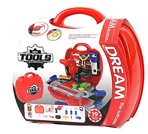 tool kit at the ready. With these DREAM SUITCASE 19-piece Toy, your little guys will be in hours of fun! This complete play set includes wrench,hammer, screwdrivers, hatchet, pliers, nails, nuts, Electronic Cordless sew, Made of safety non-toxic Plastic;
