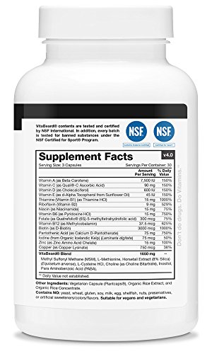 Highest Quality Don't skimp on the quality of your vitamins - demand the best for your beard! Often copied, but never equaled, VitaBeard® has revolutionized facial hair care. Every bottle of VitaBeard® contains 90 easy-to-swallow vegan/vegetarian capsules and is proudly made in the USA.