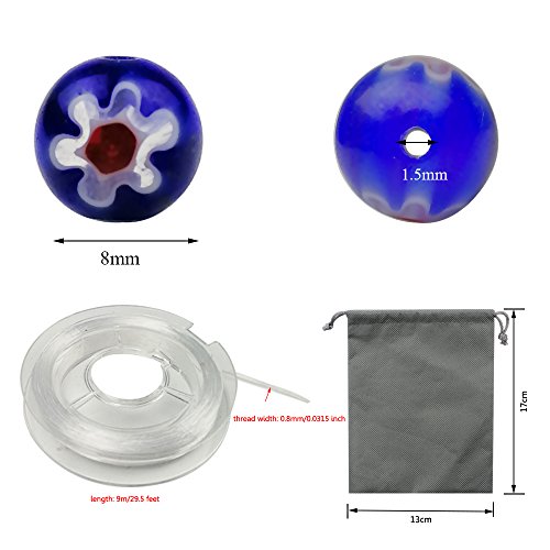 - Size: Bead diameter: 8mm/0.31 inch, hole diameter: approx. 1.5mm/0.059 inch, elastic beading thread width 0.8mm/0.0315 inch, length approx. 9m/29.5 feet, non-woven pouch: 13*17cm/5.1*6.7 inch.