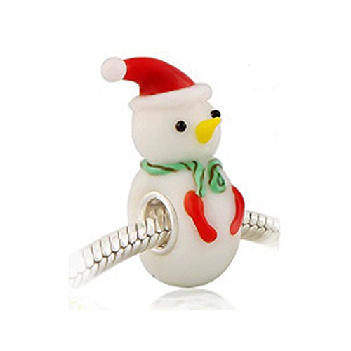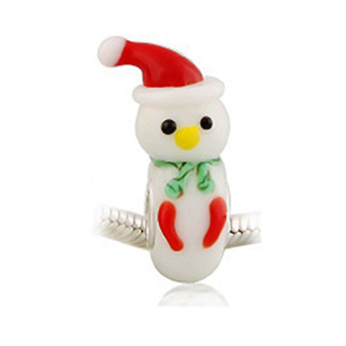 Glass 3D Frosty Christmas Snowman with 925 Sterling Silver Core Bead Fits European Charm Bracelet