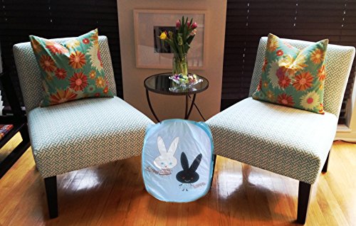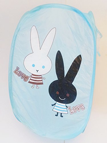 Pop-Up Foldable Nylon Baby Blue Bunny Love Design Storage Chores Laundry Hamper Basket with Handles