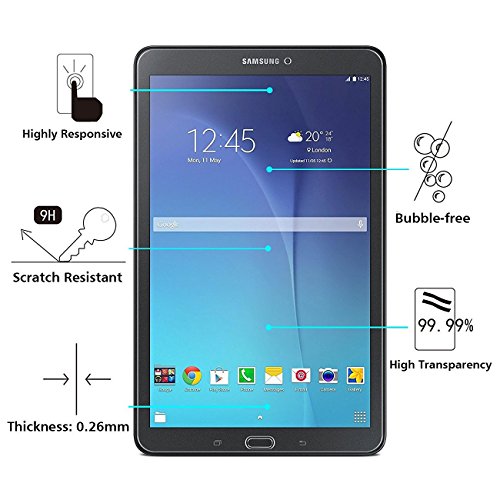 Scratch Resistant. This 9H Hardness screen protector can effectively protect your Samsung Galaxy Tab E 8.0 from unwanted scuffs and scratches by knife, keys and some other hard substances.