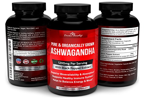 MOST POTENT SOURCE OF ORGANIC ASHWAGANDHA - If you are looking for an organic Ashwaghanda supplement that maximizes the benefits, look no further! Divine Bounty offers one of the most effective and powerful Ashwaganda organic formulas available. Our extra strength Ashwagandha complex contains an incredible 1200mg ashwagandha root powder per serving, plus black pepper extract for superior absorption.