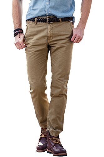 Casual pants for mens featuring two slash and two rear pockets with button closure for storage, quality button and smooth metal zip for closure. Belt loops design for waist adjustment. Straight leg/Mid rise/Slim fit