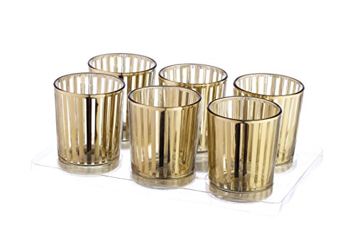 Studio : V-More Inc. Publisher : V-More Inc. Binding : Kitchen Product Description Our laser cut mercury glass candle holders are made from durable glass with laser cut mercury plated on the inner surface, and have several colors for your choice, gold, silver or rose gold. They come as a set of 6 and can hold votive candles as well as tealights. They look very adorable with a size of 2.2"L X 2.2"W X 2.55"H. These laser cut mercury glass candle holders look antique and metallic but have so many uses, not only for your wedding, party and special occasions, but also for your home afterward - a timeless and stunning addition to any decor! They will add elegance and romance to your wedding tables. Imagine your reception lit up with the warm and inviting glow of these flickering candles. A perfect scene for a perfect day! With a little bit of creativity, you can come up with all sorts of votive candle holder ideas to add the perfect touch to your event. You can also put them in various areas throughout your home as a decoration, both outside and inside. They bring warm, sparkling light to your home. In addition, if you still have no idea for what gift for your friends, don't hesitate as these useful and charming candle holders with a decent price will be your best choice. Candles excluded and are not offered with your purchase of the holders. For decoration ONLY! 0