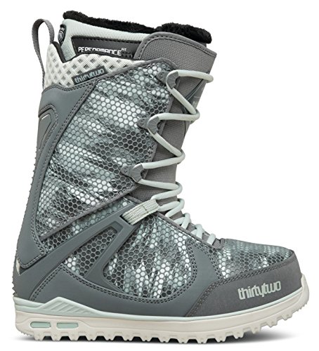 Studio : ThirtyTwo Publisher : ThirtyTwo Binding : Sports Product Description Designed with the premise that one boot should be versatile enough to transition from heavy park jumps to slashing pow without skipping a beat, the ThirtyTwo Women's TM-Two slays the entire mountain with a highly responsive, super-lightweight feel. As the team choice for ThirtyTwo's female riders, the TM-Two is the stiffest boot in its women's-specific line for seamless energy transfer when you're blasting turns faster than anyone else on the mountain. The TM-Two features a traditional lace closure for the fine-tuned fit and precise power we've all come to love from regular laces. Its tongue tension system improves heel hold by preventing the lower zone from loosening as you ride. Enhancing flexibility, the articulated cuff helps you perfect those tweaked-out grabs and stylish presses in the park. Truly customizing the boot's fit and feel, the Level 3 liner comfortably wraps around your foot without pressure points, thanks to its heat-moldable Intuition foam. The Level 3 footbed features a dual-density heel pod to prevent painful heel bruising, should you knuckle the jump landing. Offering even more heel cushioning, System G2 Gel soaks up nasty impacts in the park and vibrations from hard, choppy snow. Moreover, its Evolution Foam sole not only offers an insanely light feel, but it's also aggressively lugged for sure-footed traction when you're hiking for freshies. 0