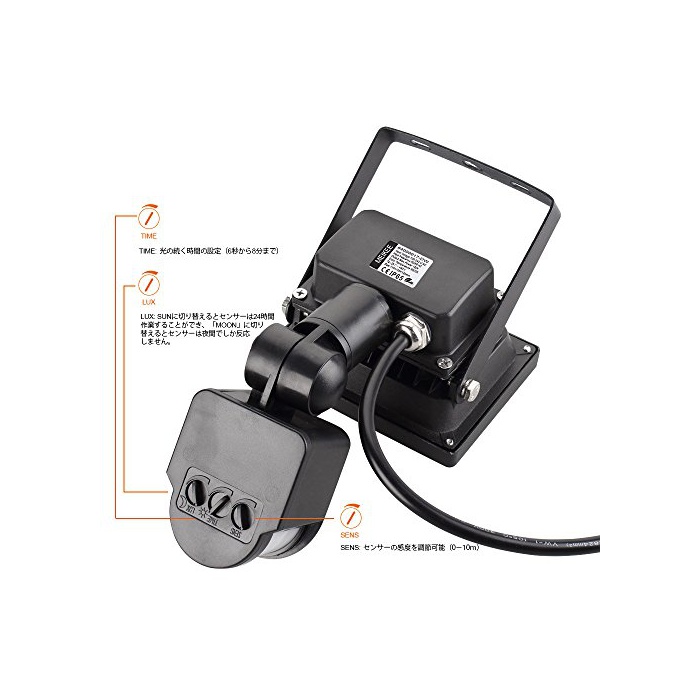 ★조절 가능:점등 시간과 발광 모드(밤 또는 전일)와 감지 거리도 조절로 옵니다.센서 라이트 저부의 SENS,TIME,LUX를 조절로 옵니다.상세한 설명은 그림과 같이 표시되지 있습니다. 센서의 각도는 어떤 방향으로 변경 할 수 있습니다.발광 각도:120°.수요에 기초하고, 를 자유롭게 조정에 옵니다,전원 코드가 1미터 길이가 있습니다.