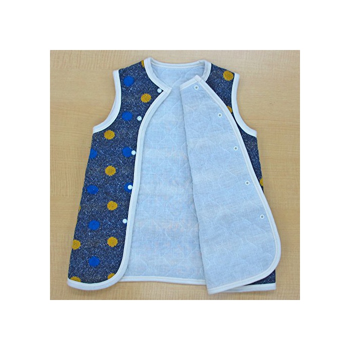 강가 봉제 ★일본제★따스한 물방울무늬 퀼트 롱 베스트 (네이비) 베스트도 sleeper로도 됩니다