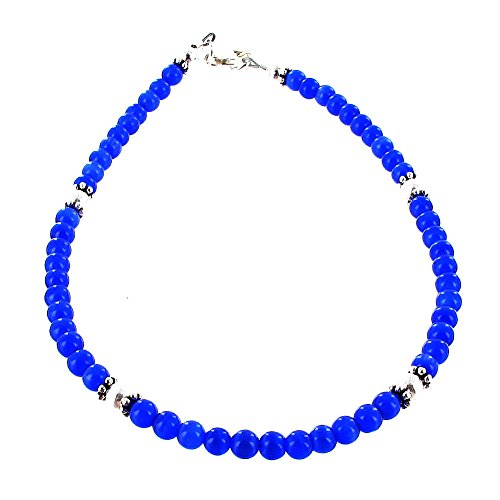 -. Title : Womens Cobalt Blue Cats Eye (Fiber Optic) & Sterling Silver Ladies Beaded Anklet with Daisies