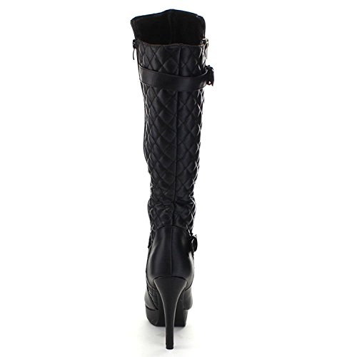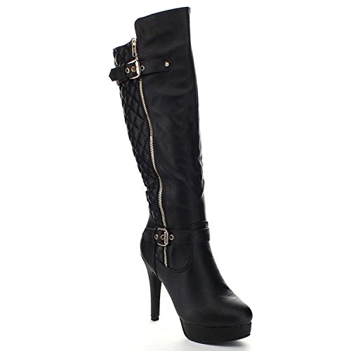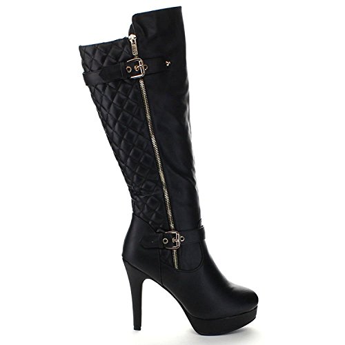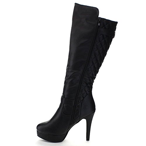 Top Moda Win-6 Women's Quilted Knee-high Stiletto Heel Platform Boots