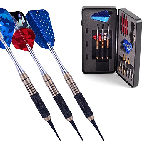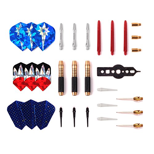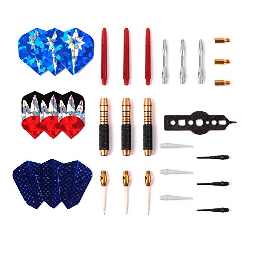 -. Feature : Including Everything You Need Or You May Need in Dart Games, Great for Beginners / Includes darts(18Grams*3, can be add to 20Grams), flights and nylon shafts, dart tool / Also includes point converter, you can convert the dart between soft tip and steel tip / Quality brass barrels, offers excellent balance, also provide excellent gripping points. / All things are included in a nice-looking dart case!