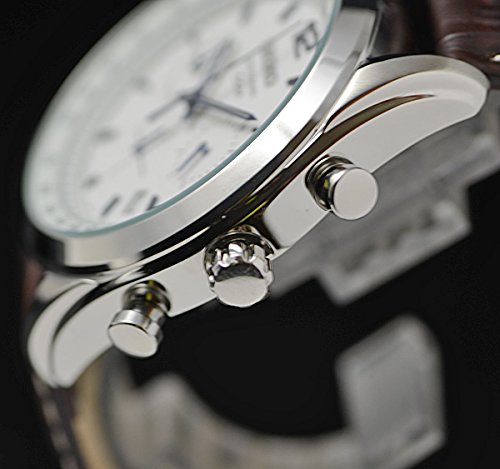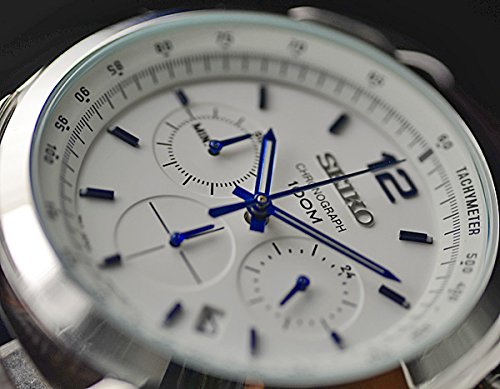 세이코의 구미용 모델의 역수입 버젼에 국내 모델에는 없는 대담한디자인가 인기의 시리즈.지적인화이트페이스에 선명한 사파이어블루를 차이 하여 색으로 했 참으로 멋진디자인.스펙 적으로도,100m(10기압)방수,1/5 초크로노그래프,데이트 캘린더,타키 meter 등 필요한 기능이 가득의 다기능 워치입니다.소재는 본체가 견고한 퓨어 스테인레스,벨트는 카프(calf) 가죽에 질감의 높이를 주는 안정되었다디자인.