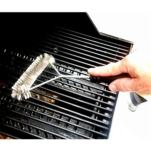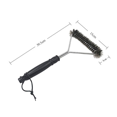 12 inch in length, three side stainless steel Grill brush, light but helps you a lot in cleaning BBQ Grill.