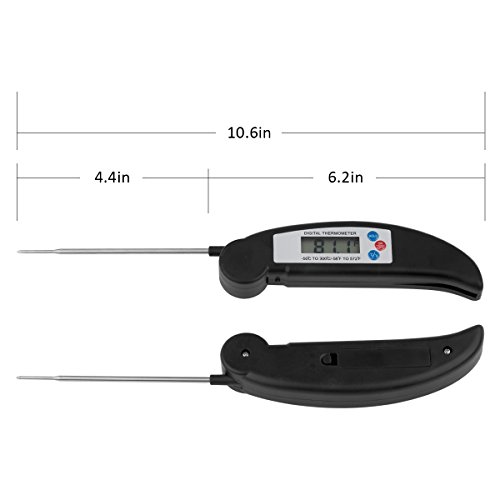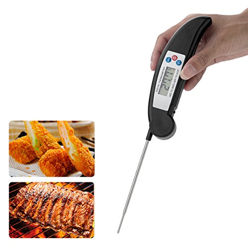 - Just turn it on, insert the collapsible probe into your food, and prepare to be amazed! This electric thermometer rapidly measures temperatures within 0.7F in just 4 seconds for guaranteed food safety. Push the C/F button to toggle your temp between Fahrenheit or Celsius. The precise instant-read technology keeps your family safe when cooking with oil, sauces, barbeque, poultry and so much more!