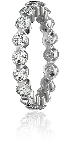 The Platinum Shared-Prong Diamond Eternity Ring is a truly breathtaking piece of jewelry. The band and settings are made of fine 950 platinum that boasts unrivaled luster. The 17 stones total an impressive 2 carats and are so wonderfully substantial that they are wider than the portion of band that can be seen between them. The very-good-cut diamonds are near colorless and nearly flawless for a stunning, sparkling beauty. This ring makes for an absolutely lavish engagement band or simply an exquisite gift to someone for whom you care deeply. The ring comes in an equally classy, finished-wood box.Feature
