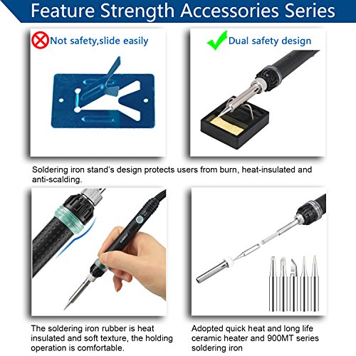 - ✔【Simple packaging for beginners】 - Soldering iron kit comes with soldering iron, desoldering pump, 5 multiple soldering tips, soldering iron stand. A simple collocation for beginner.