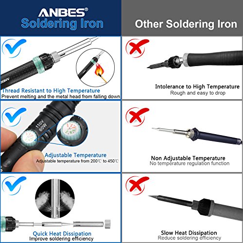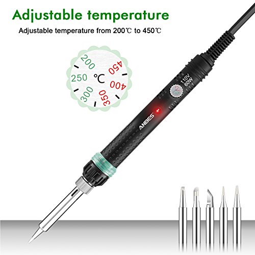 Anbes Soldering Iron Kit Electronics, 60W 110V Adjustable Temperature Welding Tool, 5pcs Soldering Tips, Desoldering Pump, Soldering Iron Stand and Solder Wire for Variously Repaired Usage