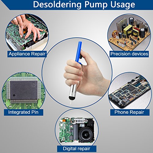 - ✔ 【Solder Sucker Desoldering Pump】 - Rugged metal construction,the desoldering pump is high pressure vacuum tube with aluminum body frame, which allows easy one-handed use, best for removing solder from PCB through hole solder joints.