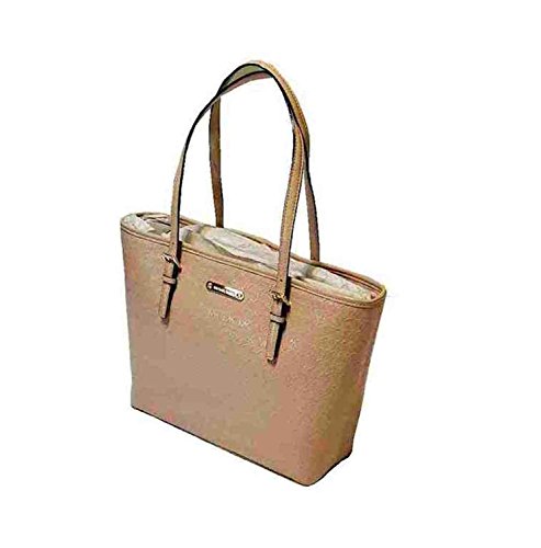 Michael Kors Jet Set Travel Carry All Tote, Monogram Leather, Oyster