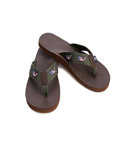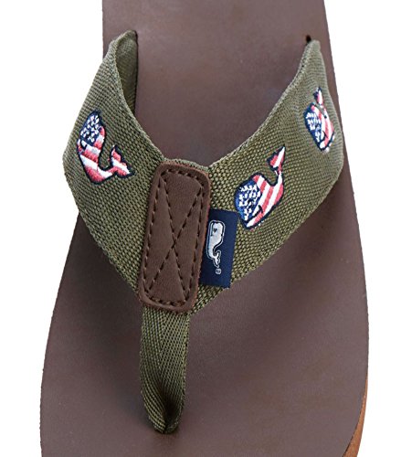 Mens Vineyard Vines Flip Flops Flag Whale Leather Green Moss 7