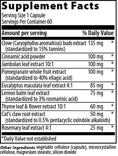 ReleaseDate : 2017-08-05 Studio : Inventory Management Services- HPC Publisher : Inventory Management Services- HPC Binding : Health and Beauty Product Description BullsEye is a compilation of some of the best plant extracts that may help maintain a healthful balance (homeostasis) among the human biome, legions of bacteria that populate the interior and exterior of the human body. BullsEye is not an antibiotic on the order of penicillin. It concentrates bioactive food substances in a synergistic grouping to help maintain healthy bacterial balance when taken daily. The bioactive food substances found in BullsEye's extracts include: 1)Tetracyclic and pentacyclic oxindoles from Cat's claw, 2) citral and citronellal monoterpenes from Lemon balm, 3) thymol and carvacrol from Thyme, 4) Camphor and cineole from Rosemary, 5) Eugenol from Eucalyptus and Clove, as well as flavonoids, tannins, egalli-tannins, alkaloids, diterpenes (carnosol), triterpenes, and phenolic acids (caffeic, chorogenic and rosmarinic), contributed by all ingredients. 0