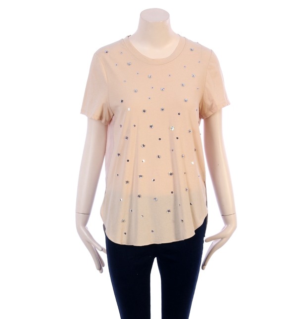 SISLEY, 비딩장식으로 포인트를주어 세련스러운 분위기를 연출하는 티셔츠입니다