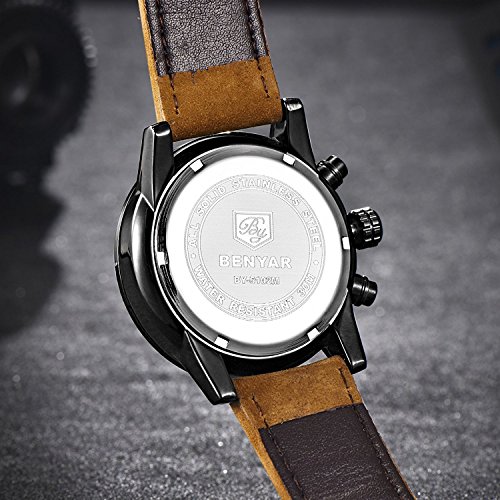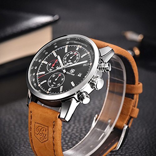 WATCH MATERIAL: High quality brown Genuine Leather Strap with Pin Buckle, Precise Japan quartz movement.