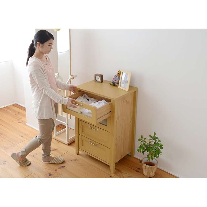 ●大きくなくてもしっかり収納できる引出し4杯付なので、衣類から小物までたっぷり収納できます。