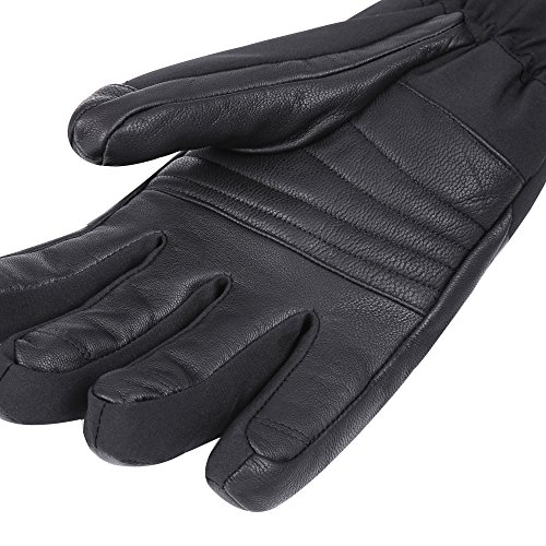 EXski gloves features with lightweight, low-bulky, super warmth and high performance in all winter sports. These pair of gloves is with 150 grams G-type 3M thinsulate insulations to keep hands warm while remaining enough flexibility and lightweight. The FAN-TEX waterproof insert makes sure your hands dry and warm in long time sports. One piece cut geniune goat ski leather palm is solid and with good permeability. The paded foam palm added maximum comfort and reduce vibration in winter sports. Full waterproof gloves zipper and composite softshell is against snow and cold air outside. Double long gauntlets cuff enhances windproof function and is adjustable by the drawstring to block cold air. Ideal for winter sports such as skiing, snowboarding, snowmobile, hockey, biking, riding and other winter works. Specification: Color: Black Gender: Adult Men, Youth Outer Shell: Composite Polyester Insulations: 150 grams G-Type 3M Thinsulate Palm: Reinforced Geniune Goat Skin Ling: Soft Cotton Pocket Size: 3.54"x3.94" Gloves Size Chart: M: Palm Circumference:25.0cm/9.85", Middle Finger: 8.5cm/3.35", Total Length: 32cm/12.60" L: Palm Circumference: 26.0cm/10.24", Middle Finger: 9.0cm/3.54", Total Length: 33cm/12.99" XL: Palm Circumference: 28.5cm/11.22", Middle Finger: 9.5cm/3.74", Total Length: 35cm/13.78" Suitable for Hand Size: M for Palm Width: 8.0cm-9.0cm / 3.15"-3.54" L for Palm Width: 9.0cm-10.5cm / 3.54"-4.13" XL for Palm Width: 10.5cm-12.0cm / 4.13"-4.72" Measurement Method: Total length: measure the length from the top of middle finger to the bottom of gloves. Palm Width: measure the length of palm under the knuckle exclude thumb finger. Middle Finger Length: measure from the top of middle finger to the bottom. Package Including: 1 Pair Ski Gloves