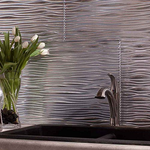 Fasade B65-08 Easy Installation Backsplash Waves Panel for Kitchen and Bathrooms, 18" x 24", Brushed Aluminum