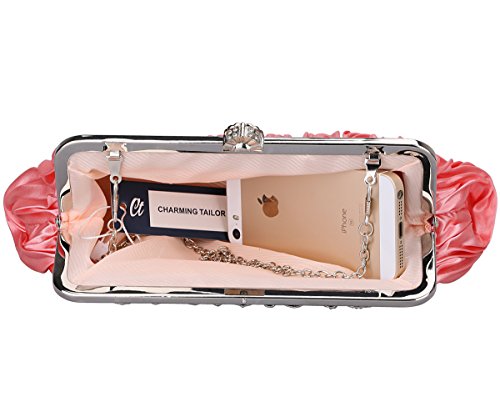 -. Feature : This Charming Tailor EVENING BAG IS MADE OF QUALITY SATIN, with a soft and smooth touching feeling. / Ingenious clasp closure, it is convenient to open and close / Interior open pocket, top quality Palladium Metal Frame with Embossment & Rhinestones details with crystal lock / 2 x Detachable O chain shoulder straps, the longest one with 23" drop, the other 7" drop. O chain is simple and elegant, and it won't hook your hair or scratch your clothes. Carry Way: This evening clutch bag can be carried in hand, on shoulder or cross body / W10.6 x H4.7 x D1.2 inches or W27 x H12 x D3 cm, large interior space for essentials like iPhone 6 plus or iPhone 7, wallet, key and lipstick etc.