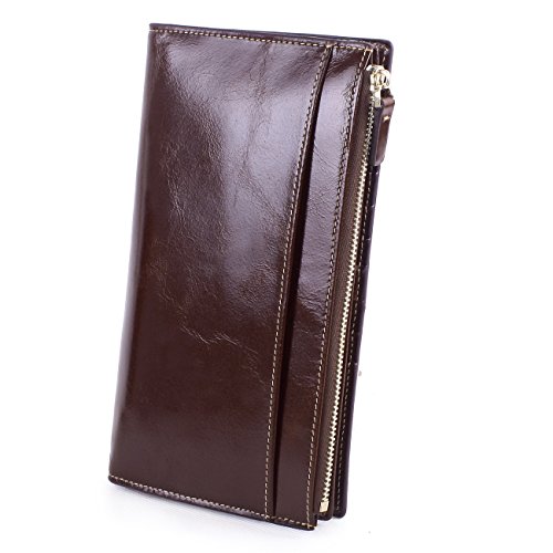 -. Feature : Material of the wallet: 100% leather, GENUINE GUARANTEE Top grain oil wax cowhide, gold-color hardware, heavy duty zipper, luxury looking and feel. / Wallet Dimension: (L)7.48" x (W)0.98" x (H)4.33" ; Weight: 0.33 pounds. It can FIT iPhone7 PLUS. / Structure: 20 Credit card slots and 1 photo slot, 3 bill compartments, 2 full-length compartments, 1 phone compartment with zipper. Easy put money, change, coin, check book and phone.The whole bag made of soft leather, and handmade. Ultra-thin design, combination of zipper & button closure designed for your security. / Characteristics: Zippered Around & Textured Snap button. This is a powerful purse, Stylish appearance, Multi-storey fold is designed for you to keep your things organized well and easy to use. 4 colors for your choice, all kind of colors are beautiful and gorgeous; you can choose any color you like, must have one color fit you most. Excellent Packaging Box, Great gift for family and friends. / 100% MONEY BACK GUARANTEE: We know you'll love our wallet as much as we do, If for any reason you're not 100% SATISFIED, let us know and our customer service team will make things right: Full refund or a Free replacement, whichever you prefer.