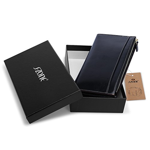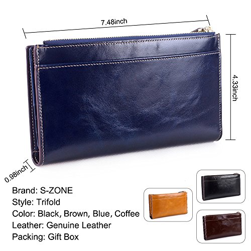 -. Title : S-ZONE Women's Genuine Leather Trifold Long Wallet Card Case Slim Clutch Purse
