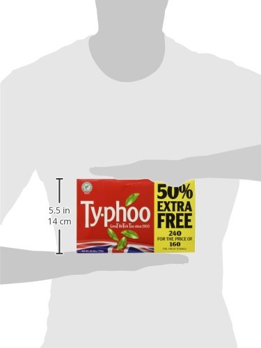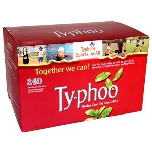 -. Binding : Misc. -. Brand : Typhoo -. EAN : 5000168067711 -. Feature : Refreshing bright in color and brisk in flavor / Authentic Typhoo Tea from England / Typhoo decaf is Britain's most popular decaf tea. / Now available in a resealable foil bag to improve freshness. -. Label : Typhoo -. Manufacturer : Typhoo -. PackageQuantity : 2 -. ProductGroup : Grocery -. ProductTypeName : GOURMET_FOOD -. Publisher : Typhoo -. Size : Single -. Studio : Typhoo -. Title : Typhoo Tea 240 Bags 2 Pk