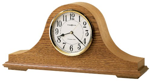 The Nicholas Mantel Clock by Howard Miller is finished in Golden Oak on select hardwoods and veneers.