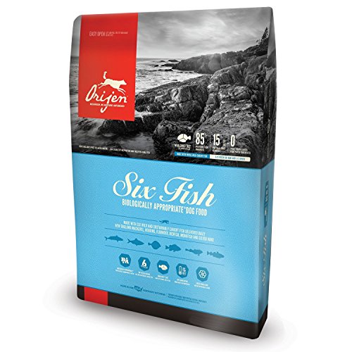 Origin 6 fish is a top rated, premium dry dog food that is composed of six major fish proteins, fresh vegetables and fresh fruit. Orijen intends to create a balanced blend of protein, fibre and fats that would naturally occur in a dog's diet. All of orijen's foods are grain-free which means they do not contain corn, soy or wheat fillers. This Origin 6 Fish dog food is suitable for all breeds, sizes and ages of dogs. The lean and healthy protein source of this formula is six different types of Salmon, Herring and Flounder, which means that dogs will get a variety of nutrients from each type of fish. Fatty acids that dogs need for healthy skin and coats is also included within this superb and delicious dog food, and botanicals selected by vegetarians are included to satisfy a dog's innate urge to forage. These wonderful ingredients include Marigold flowers and Juniper berries. Antioxidants within this premium dog food will also boost a dog's immune system. This dog food contains no artificial ingredients, is naturally preserved and will help a dog live a healthy and happy life. Contains all the vitamins, minerals and antioxidants necessary for a healthy canine can be fed to dogs of all breeds and in all stages of life. Ingredients: Whole Atlantic mackerel, whole Atlantic herring, whole Atlantic flounder, whole acadian red fish, Atlantic monkfish, whole silver hake, mackerel meal, herring meal, blue whiting meal, herring oil, whole green peas, whole navy beans, whole red lentils, Alaskan cod meal, pollock meal, sunflower oil, whole yellow peas, whole pinto beans, whole chickpeas, whole green lentils, lentil fiber, natural fish flavor, safflower oil, freeze-dried cod liver, whole pumpkin, whole butternut squash, kale, spinach, mustard greens, collard greens, turnip greens, whole carrots, whole apples, whole pears, dried kelp, pumpkin seed, sunflower seeds, zinc proteinate, mixed tocopherols (preservative), copper proteinate, chicory root, turmeric, sarsaparilla root.Feature