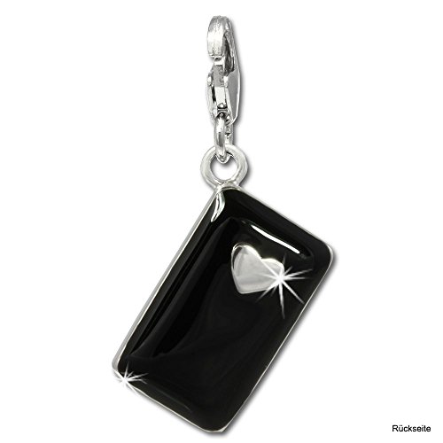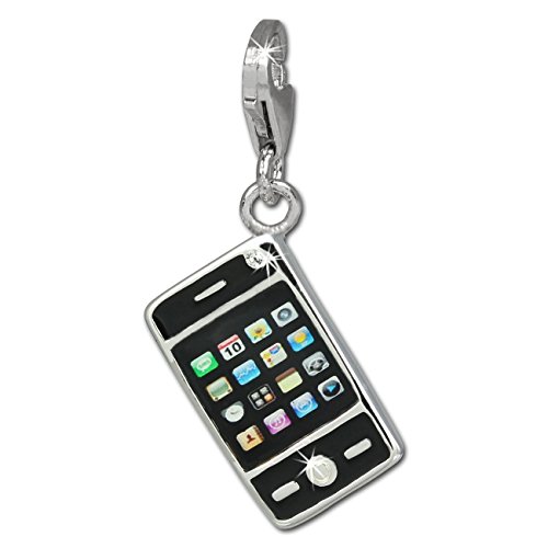 -. Title : SilberDream Charm smartphone black enameled white zirconia 925 Sterling Silver Pendant FC821S