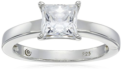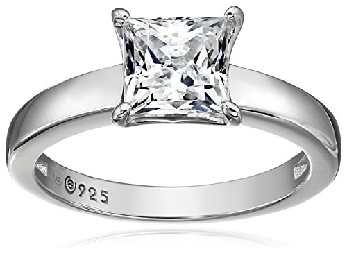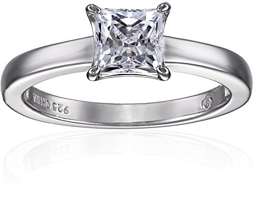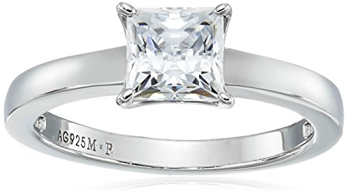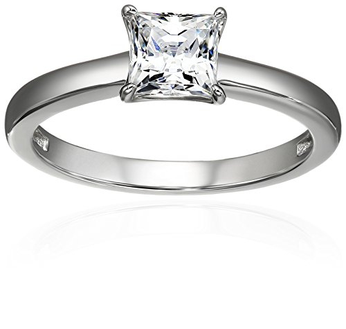 Platinum-Plated Sterling Silver Swarovski Zirconia Princess-Cut Solitaire Ring (1 cttw), Size 5