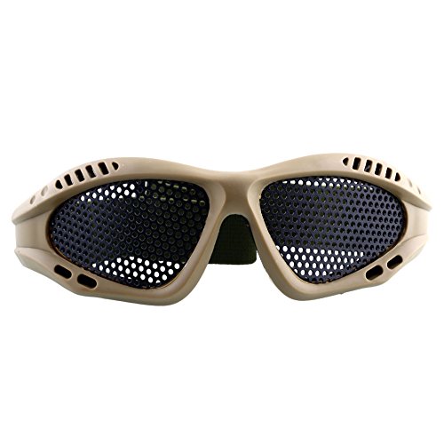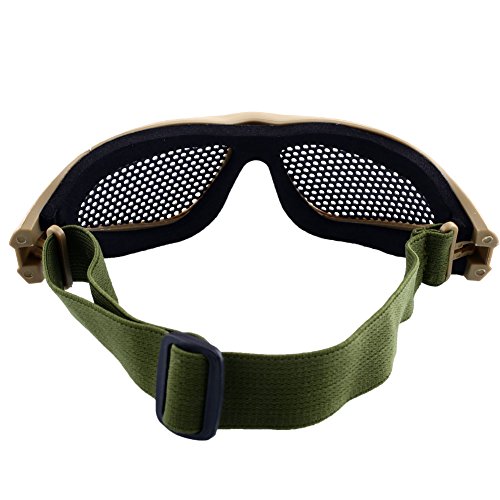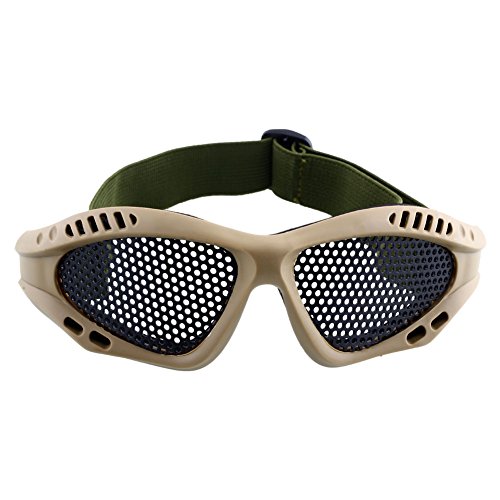 -. Feature : Metal mesh goggle is made of steel wire mesh and high quality PVC,Protects your eyes from striking by insects and hurting by tree branch in field forest. / The interior frame is seated with soft foam for comfort wearing,Designed for long term use and helmet compatibility / The strap is fixed on the back of head, thus no worry of goggles falling down during strenuous exercise. / Widely applicable for activities like climbing, outdoor sports and airsoft which has potential harm to eyes, thus providing a good protection for your eyes. / After Sale Service:If you are not Satisfied with your purchase, and we will provide full refund